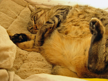 デコはエラそうに、チビちゃんを見下ろしてお昼寝…