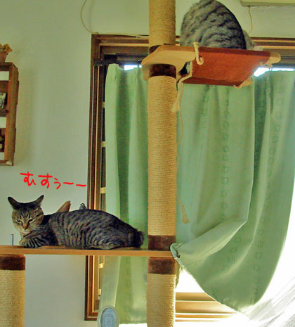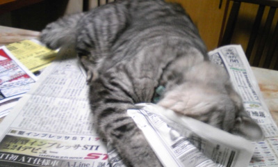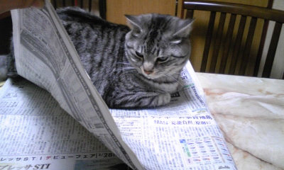 ボクが乗ってるのに広げないでよ!」