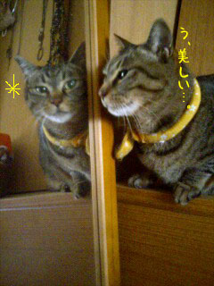 自分の顔を鏡で見てうっとりするむぎ (・・・?)