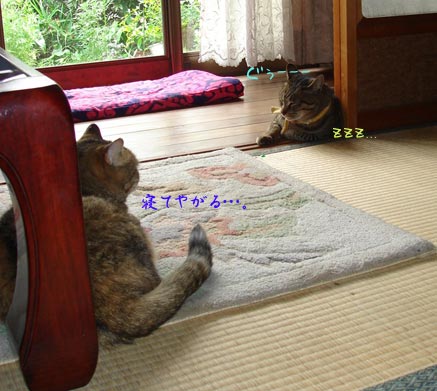 急いで縁側へ向かうと、ヒモが たり~ん とお外へ・・・