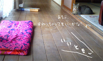 いつもの場所をチビちゃんにとられちゃった むぎちん。