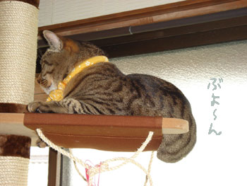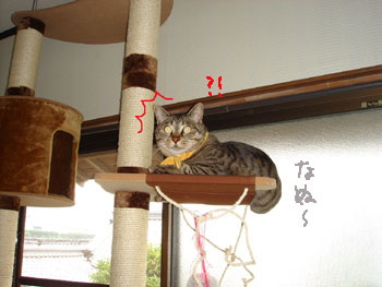 左の筒には入って寝てくれます。が、ナゼか手前の台から登らず、