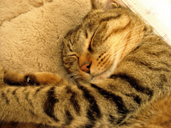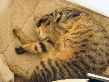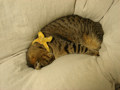 デコはエラそうに、チビちゃんを見下ろしてお昼寝…